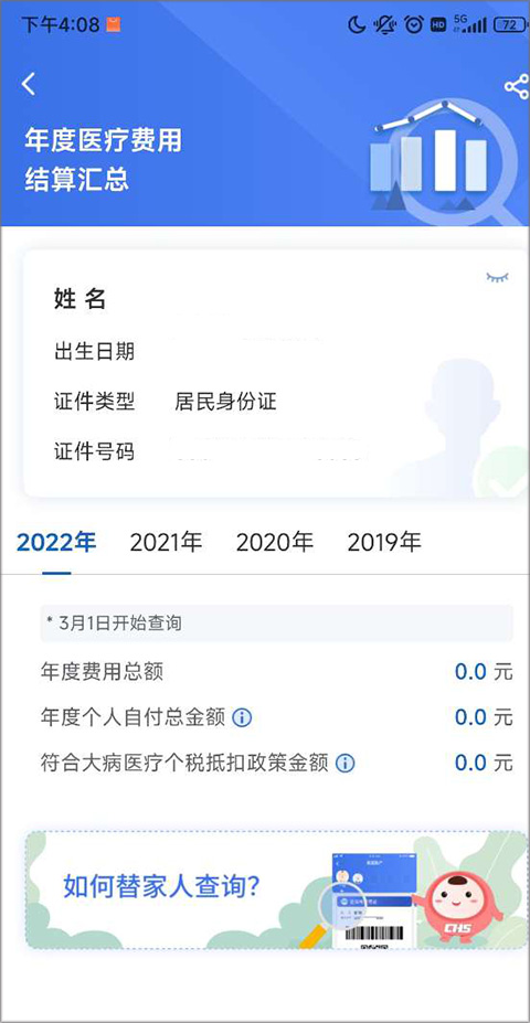3、认证完成后在“个人所得税大病医疗专项附加扣除”专区,查询扣除额。在这里进行“年度费用汇总查询”和“年度费用明细查询”。