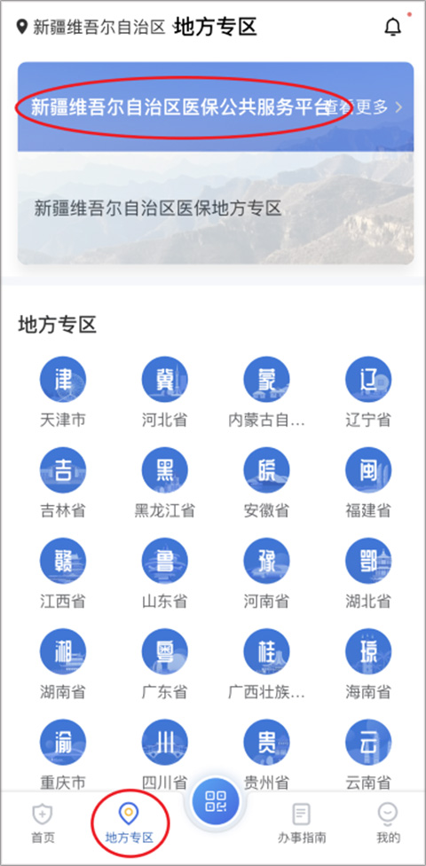 1、进入“国家医保服务平台”后下方点开“地方专区”