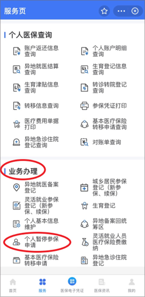 业务办理—个人暂停参保申请