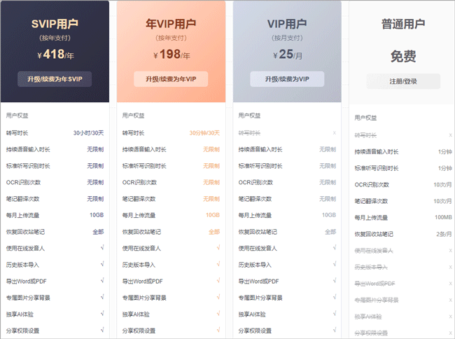 不限时语音输入、不限时录音速记、不限次OCR识别