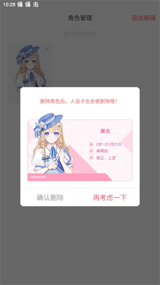 3、点击人设卡右上角的删除选项。