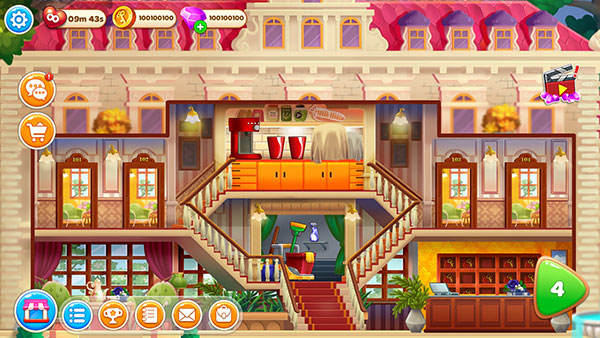 3、充满更多快乐的游戏体验,完成不同的任务,去不断的升级你的酒店,获得更多财富。