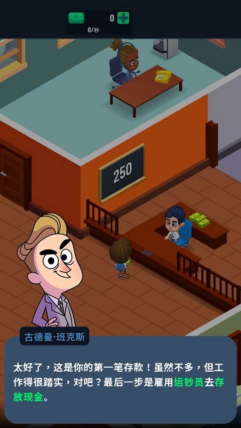 古人云“君子爱财,取之有道”。本期小编要给大家推荐一款银行大亨中文版游戏,它的英文名为Idle Bank Tycoon ,这是一款放置类经营模拟游戏。在游戏里,玩家将有机会向世界展现自身才能,通过对银行内部进行装饰、招聘管理部门人员以及执行战略决策,一步步成为银行业的传奇人物。别看游戏玩法看似简单,实际上它对玩家的商业眼光可是有着很高的要求,因为玩家所做出的任何决定,对于银行而言都意味着一笔不菲的开支。考虑到新手玩家,银行大亨特意准备了详细的前期教学,还贴心地附赠每一阶段的任务提示。只要玩家完成既定的目标任务,就能收获丰厚奖励。