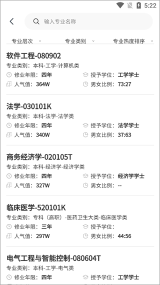 搜索专业,查院校详情;