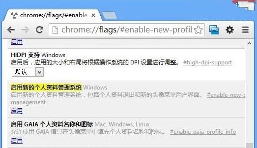 1、在Chrome浏览器地址栏输入:chrome://flags/#enable-new-profile-management