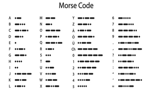 摩斯电码与英文字母之间的对应关系如下图: