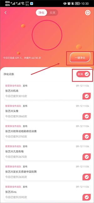 2、进入净化界面,单击词条净化,或者点击全选,选择完毕后点击一键净化
