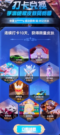 2、连续打卡10天,即可获得限量皮肤