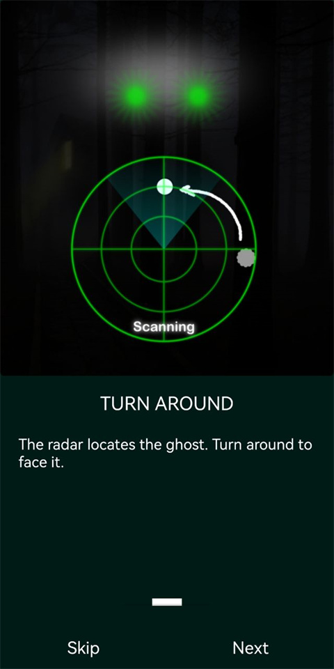 雷达发现鬼:在主界面中,用户可以看到一个虚拟的雷达屏幕,当雷达探测到幽灵时,会发出声音警报。这种警报声可以帮助用户确定是否需要转身面对幽灵。