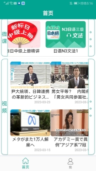1、打开大家的日语app,进入应用首页,包括日语微课、视频和口语秀的栏目,