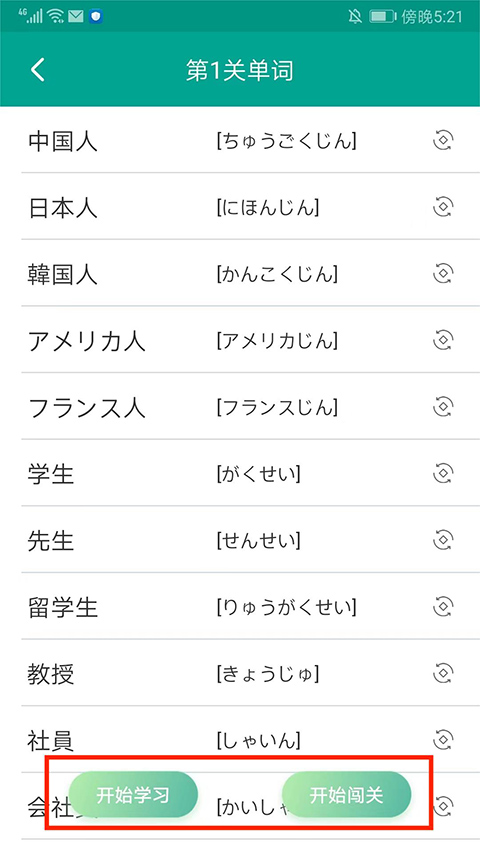 4、在单词闯关界面,支持学习和闯关两种模式,用户可根据需求自行选择,