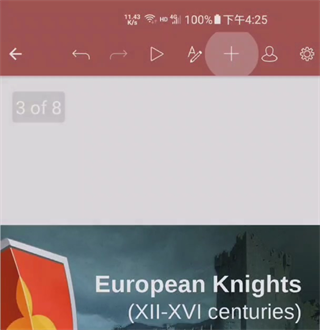 ONLYOFFICE手机版增加了新的填充类型:变、纹理和图案,比如打开一人幻灯片,触摸添加按钮