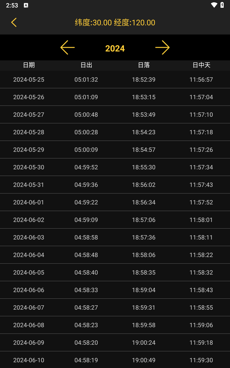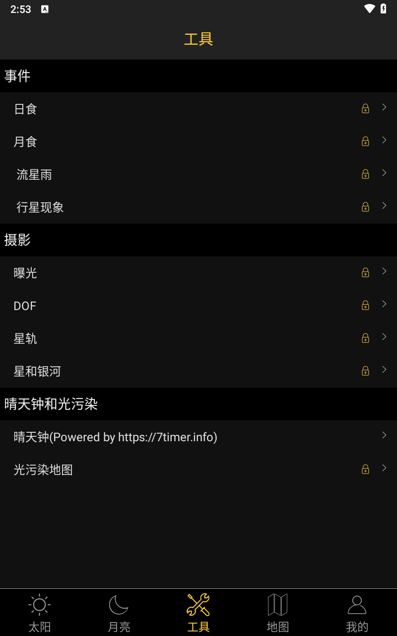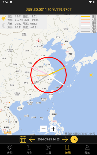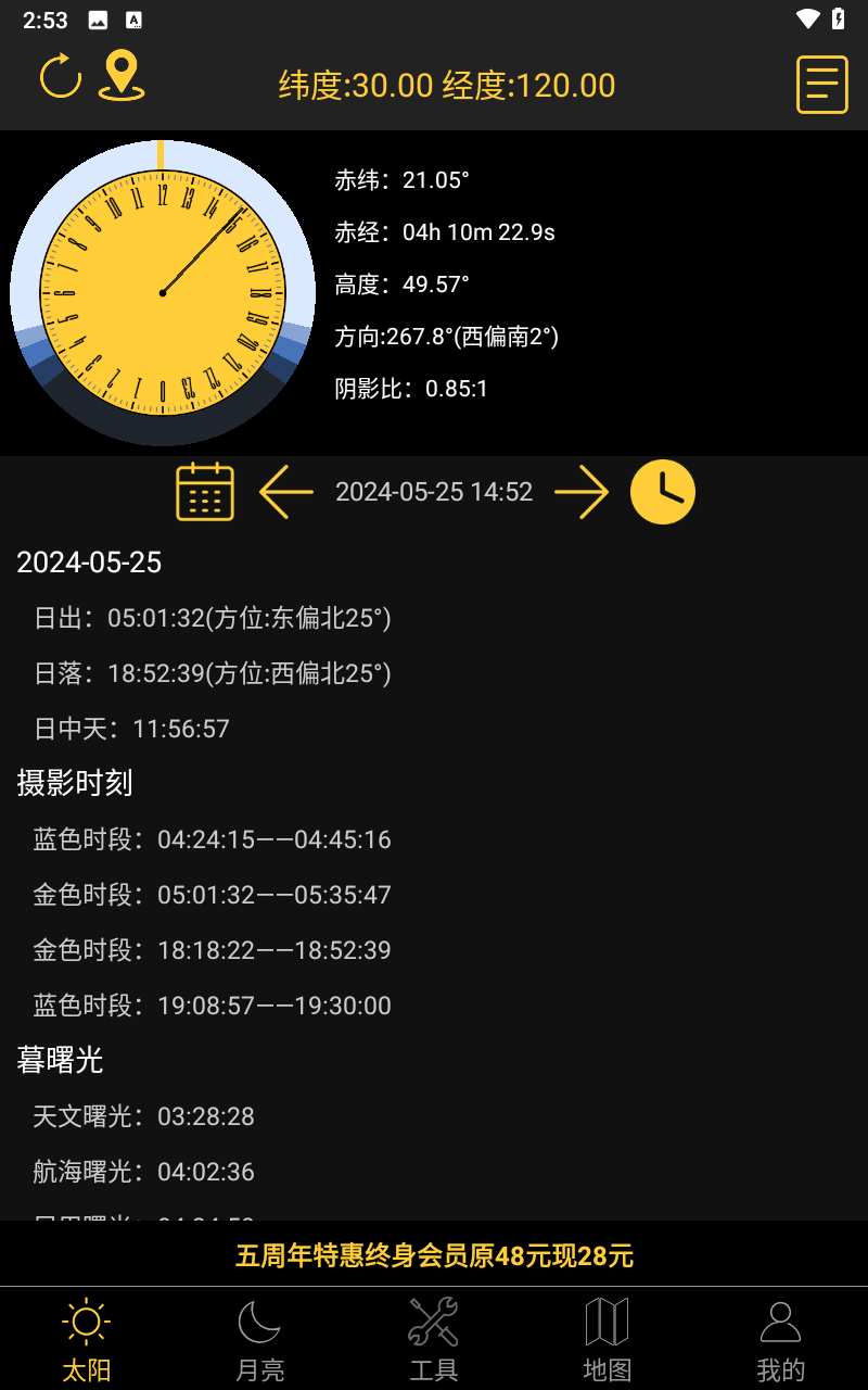 软件内可以实时查看日出日落时间,对拍照很有帮助。