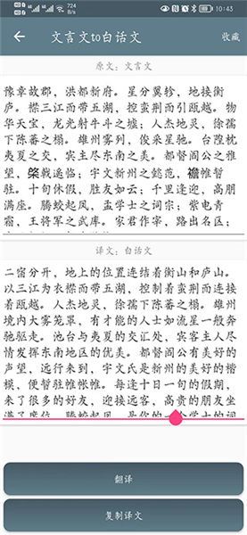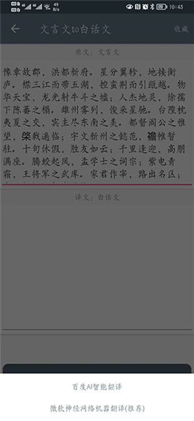 1、这款软件具备文言文转白话文、白话文转文言文、文言文拍照翻译、我的收藏以及历史记录等多种功能,你可从中挑选自己所需的功能。