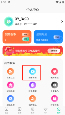 2、接着点击“观看历史”选项,便能看到你近期观看过的短剧列表。