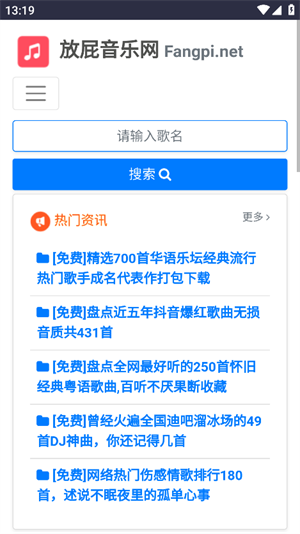 放屁音乐网为你精心推荐丰富的音乐资源,海量音乐资源于此呈现,超多不同风格的音乐作品任你挑选。在这里,用户能够更便捷地搜索心仪的音乐,丰富多样的音乐不断推送,喜爱的旋律纷至沓来,助力用户高效进行音乐搜索。网站汇聚全网热门音乐资源推荐,让你随时随地在线畅听。