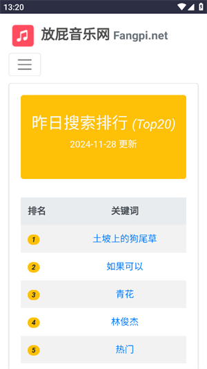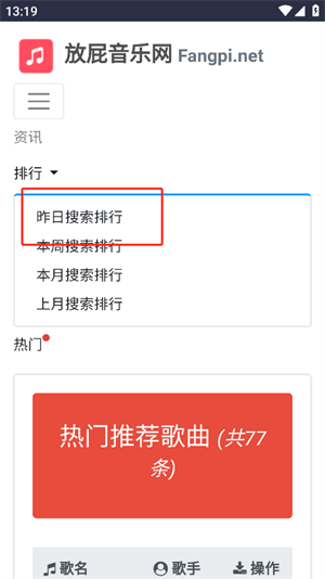 4、然后就可以浏览到昨日热门搜索歌曲了