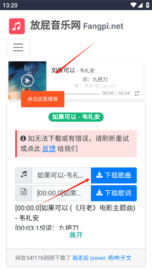 5、选择要听的歌曲,点击播放/下载