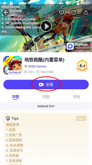 3.小编这里以地铁跑酷为例,在此界面中直接点击安装即可下载游戏