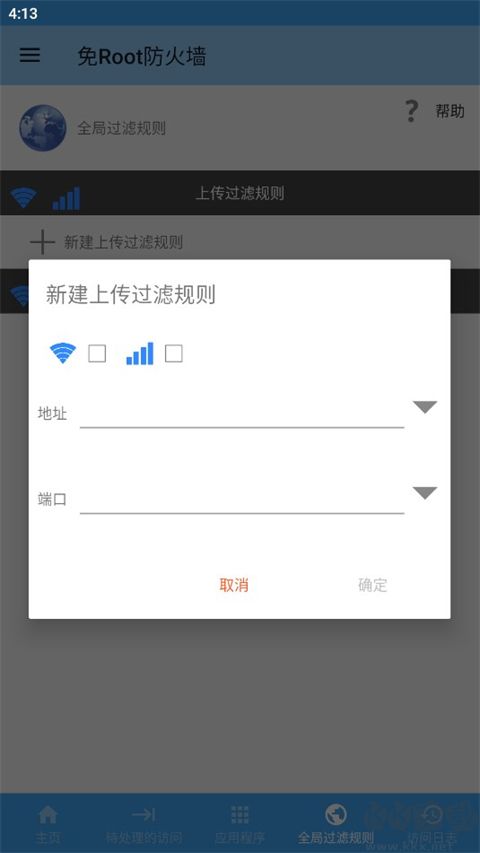 1、在全局过滤规则界面中点击新建上传过滤规则。