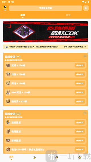1. 打开zm666.xyz画质怪兽,进入应用主界面,在界面中能够看到流畅、均衡、高清、HDR高清以及超高清等画质选项,用户可依据自身需求选择【点击修改】这一选项。