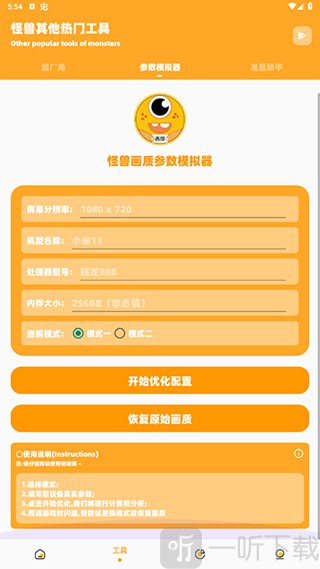 4、如果是新手的话也没关系,zm666xyz芝麻画质怪兽还为大家提供了画质参数模拟功能,只需要选择【开始优化配置】就可以一键设置成合适的画质参数。