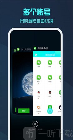 通过这款产品,用户能在一部手机上登录多个微信账号,无论是