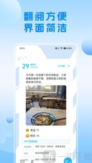 这是一款功能极为多样的软件,它不仅可以生动形象地记录下你每日的记忆,就连最为细微的情绪与心情,也能完整记录其中。如此一来,即便一个月过去,当你追溯过往心情时,能够清晰知晓整体状况,从而更好地加以控制与调整,让情绪处于掌控之中,避免暴躁和郁闷的情绪主导自己的每一天。