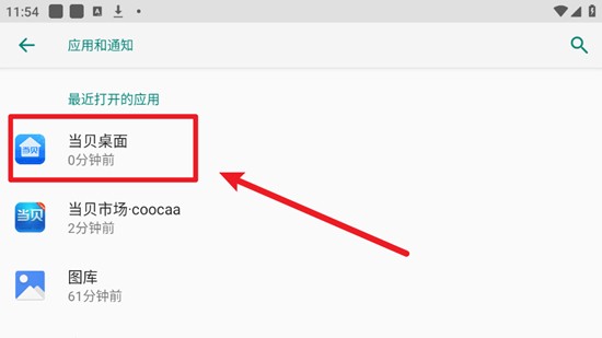 5. 进入设置界面,找到应用和通知并打开,接着点击当贝桌面,随后点击主屏幕设置,这样就完成操作了。