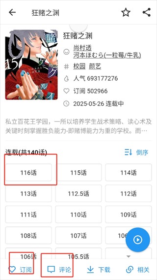 找到内容后,你可以点击章节阅读,也能选择订阅,还可以发送评论和其他人一起交流探讨。
