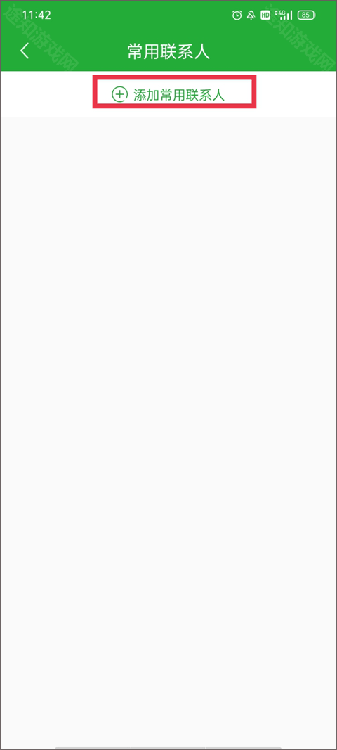 2、这个常用联系人界面会呈现你此前添加的全部常用联系人信息列表,点击红色框标注的“+添加常用联系人”按钮。
