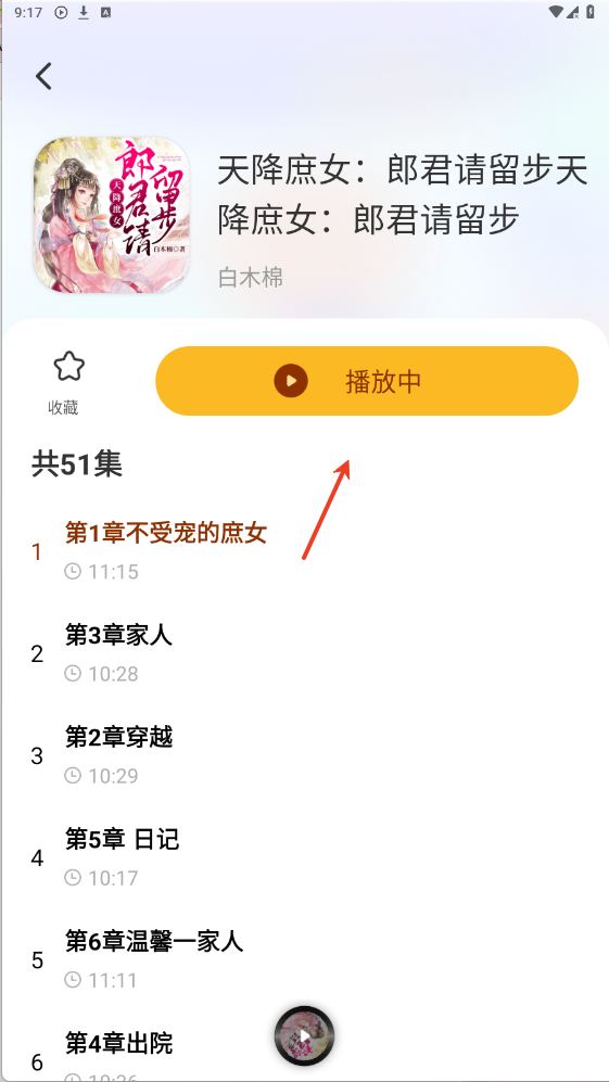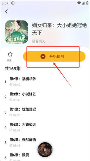 2、打开自己想听的小说,点击开始播放