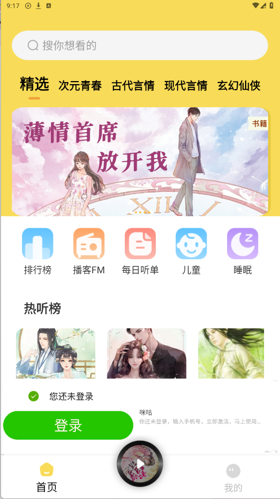 3、在首页中可以看到超过精选热门有声小说资源