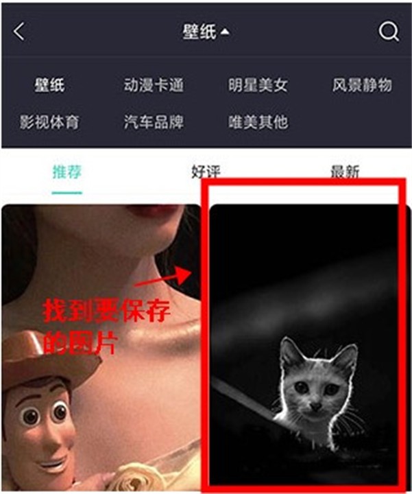 用户进入后,可通过细分类别查找并保存自己需要的图片。