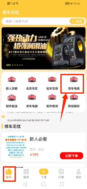 2、首页选择货车电瓶选项浏览相关商品。
