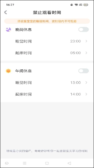 5. 进入该界面后,能够设置晚间与午间的休息时段,选定合适的时间段后进行勾选操作即可。