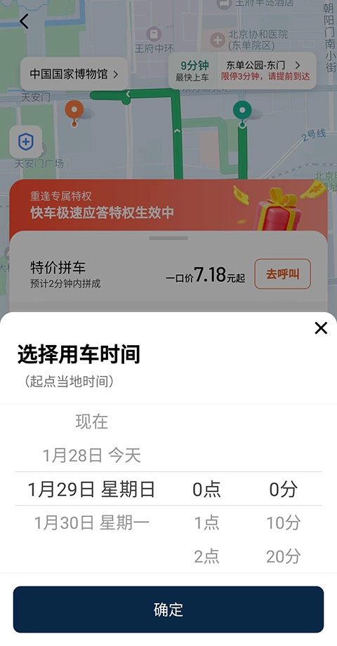 4、要是打算提前预约出行,可点击左下角的按钮来【选择用车时间】。