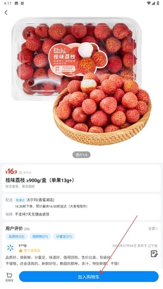3、选商品(如桂味荔枝),点右侧+,加入购物车。