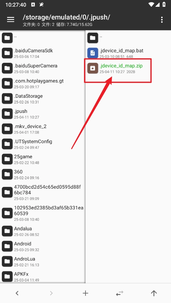 2、进入后会识别所有文件,然后选择并长按所需解压的文件。