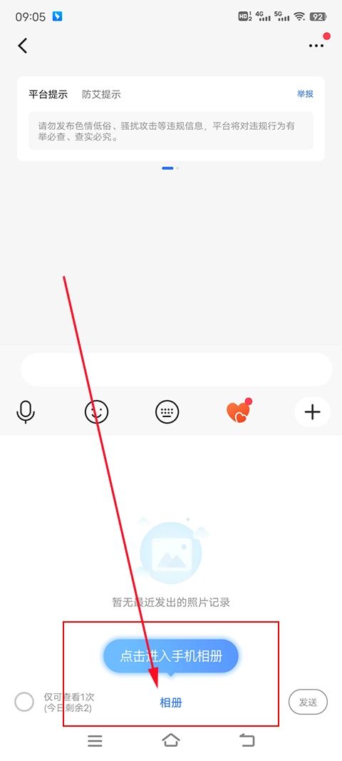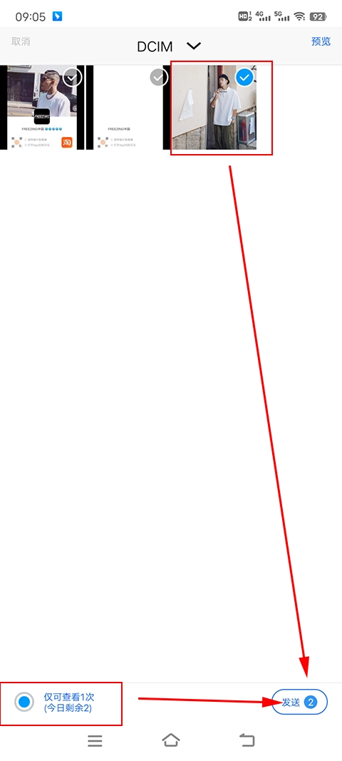 2、图片发送选项中,勾选上0秒钟显示的选择