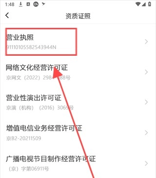 2、其次,进入资质证照界面,点击其中的营业执照功能