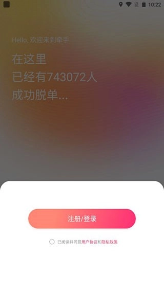 1、打开牵手恋爱软件,使用手机号注册登录。