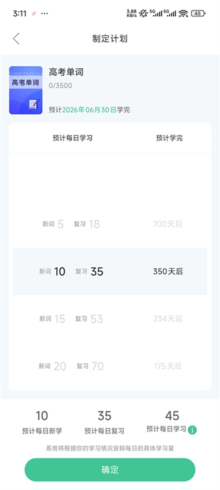 3、选择你每天的学习量。