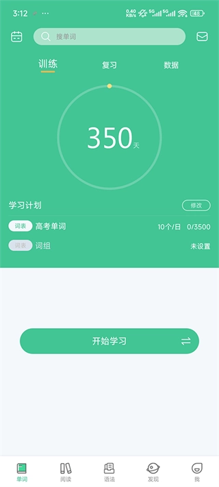 3、学会了一定数量的单词后,继续学习将自动进入复习模式。