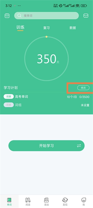 6、如果你想修改学习计划就点击主页的修改。
