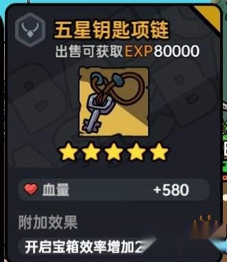 6、搭配散装项链:钥匙项链,升至五星后,每次攻击宝箱的效率提升2点,每次攻击会使宝箱损失3点生命值。