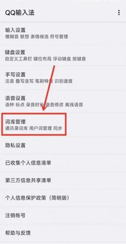 2、进入设置页面,点击“词库管理”设置项。