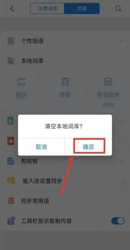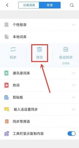 3、进入词库管理,点击“本地词库”下面“清空”。