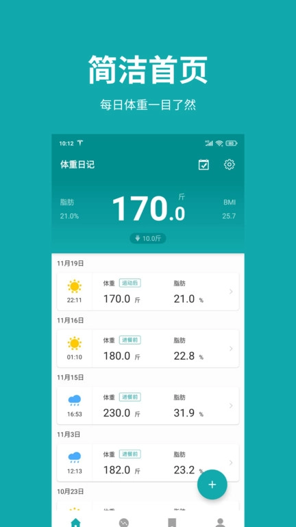 体重日记是一款颜值出众、操作便捷且功能完备的体重记录工具。体重趋势、健康状态与记重日历清晰直观,多款皮肤可供挑选,还能记录专属的体重日志。无论您是减肥、增肌还是维持体型,它都能细致记录您的每一步变化,体重日记愿陪伴您一同成长。