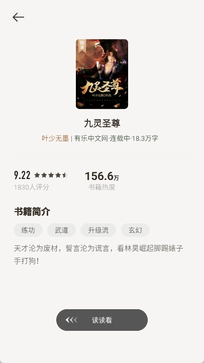 3、找到想要听的小说后点击封面即可进入阅读的详情页界面。